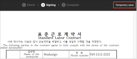 You can save your progress by clicking the ‘Temporary save’ button. If you return later, you can continue signing from where you left off.