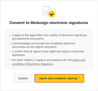 Finally, click the ‘Complete’ button and then the ‘Agree and complete signing’ button.