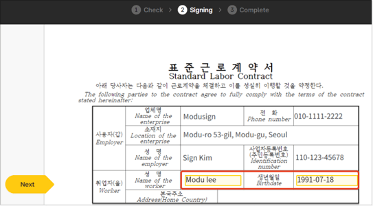 Fill in the required fields in the document, such as text fields and checkboxes. Use the ‘Next’ button to move to the next required field.