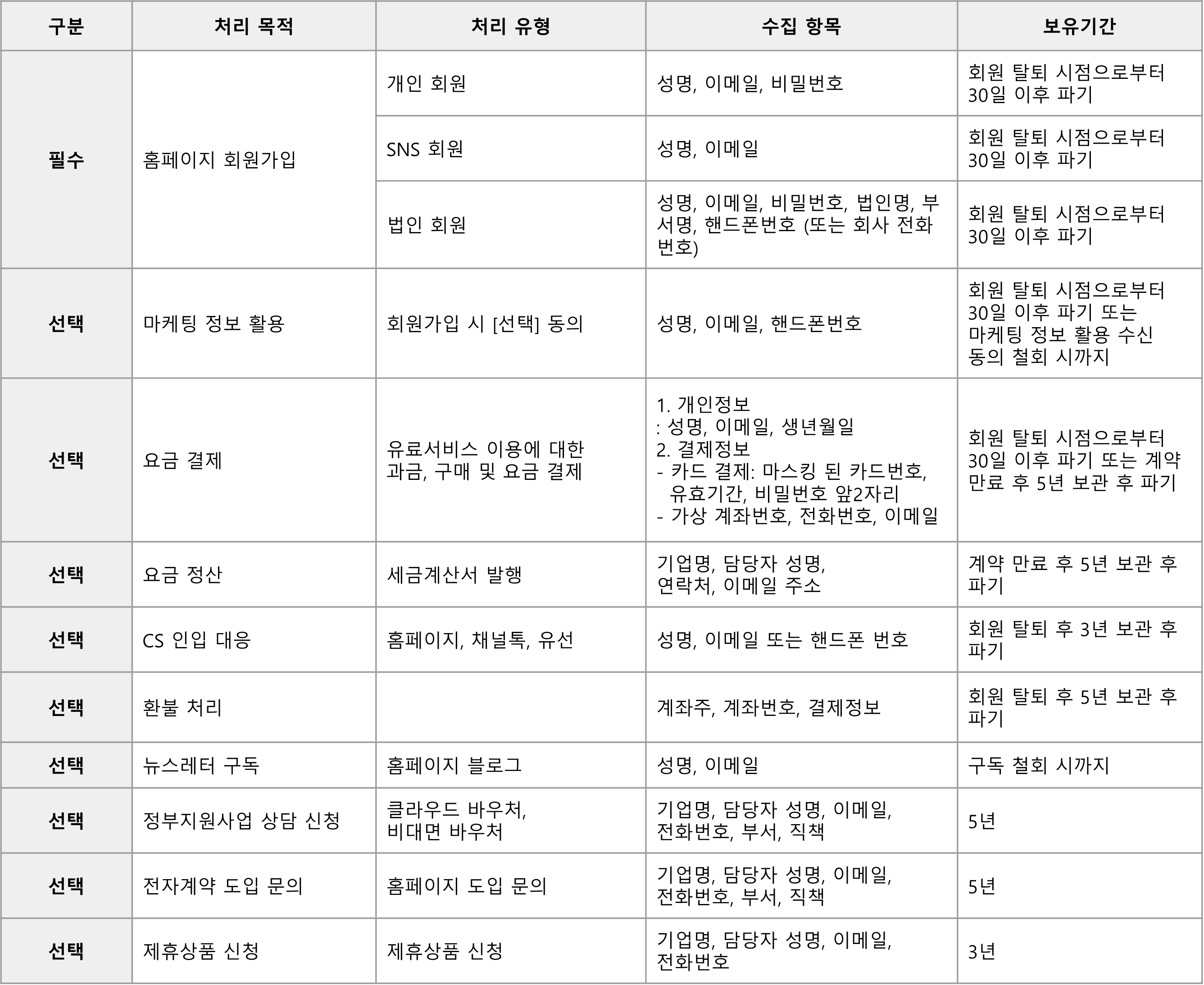 - 위탁사 요청에 의한 서비스 이용 시 개인정보 수집 처리