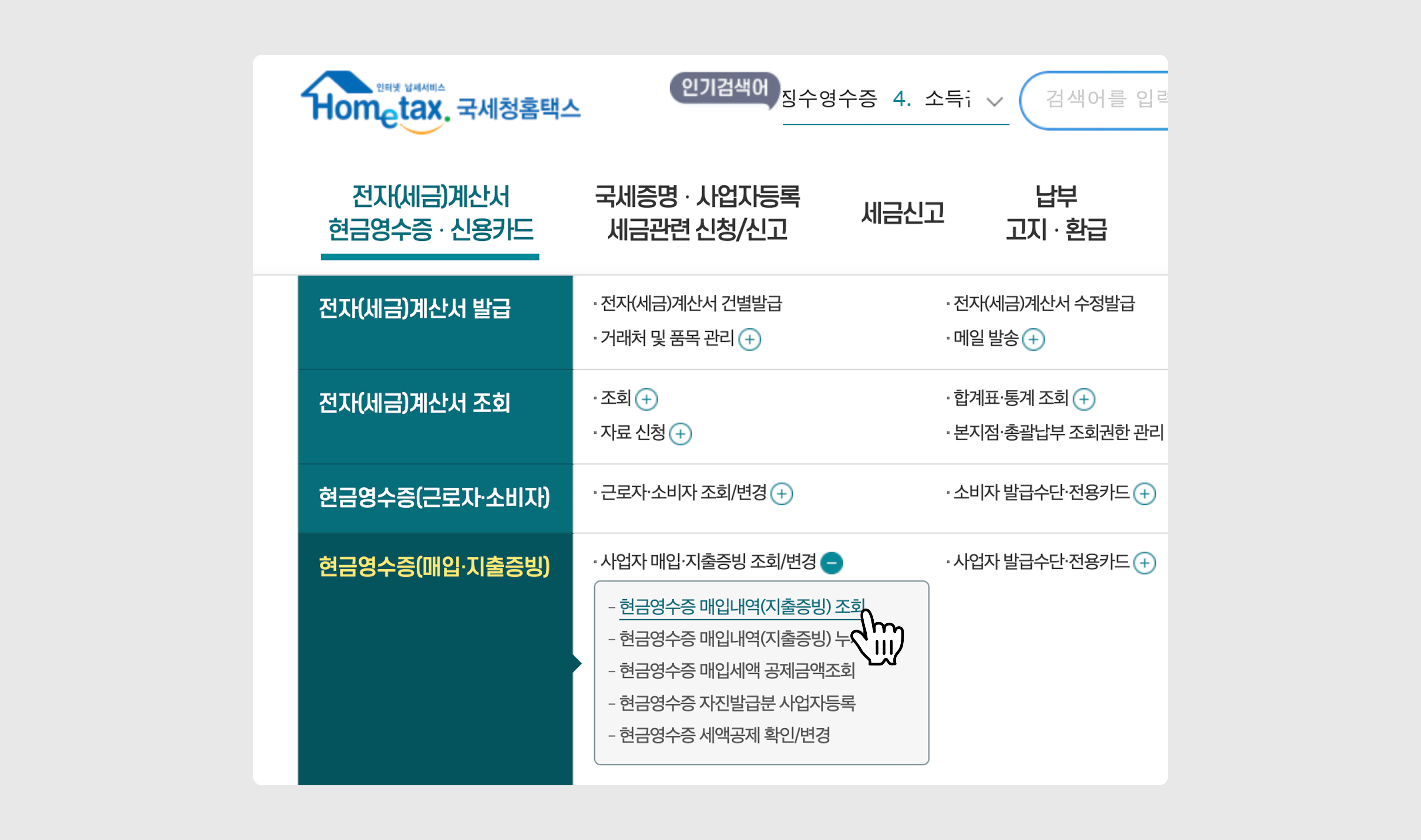 예치금 결제의 경우, 현금영수증 확인 방법에 따라 홈택스에서 확인합니다.