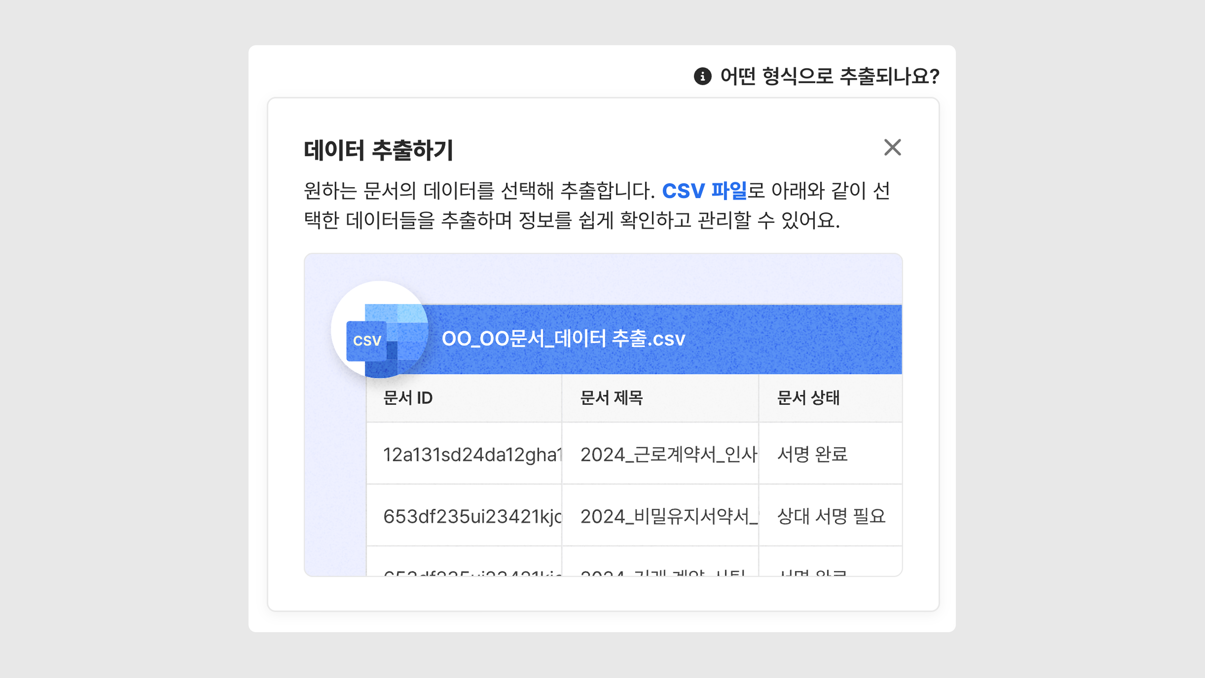 모두싸인에서 진행한 문서들의 기본 정보를 한 번에 추출할 수 있습니다.