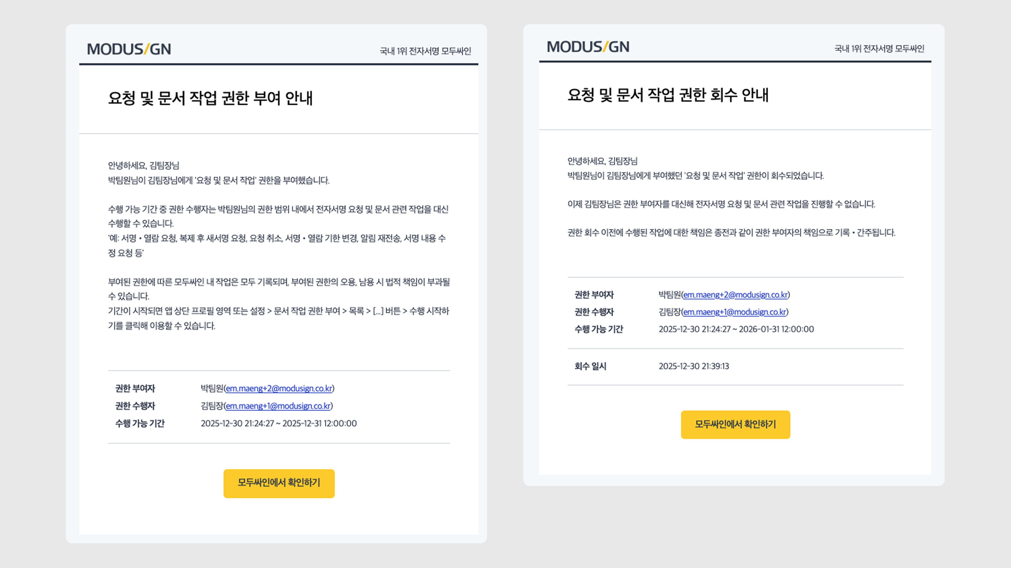 권한 회수 사실은 서명자에게 이메일로 안내됩니다.
