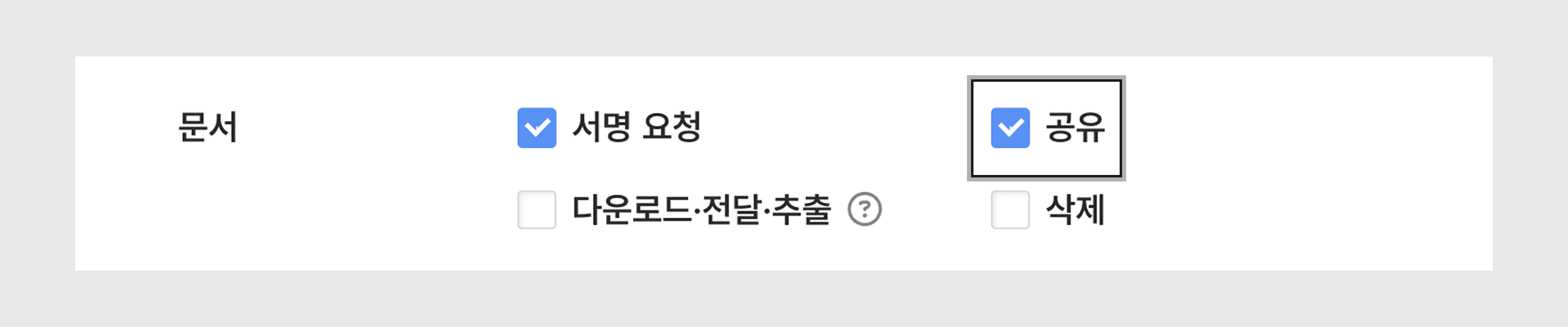 • 김모두 : 문서 > 공유 권한이 설정된 역할 부여