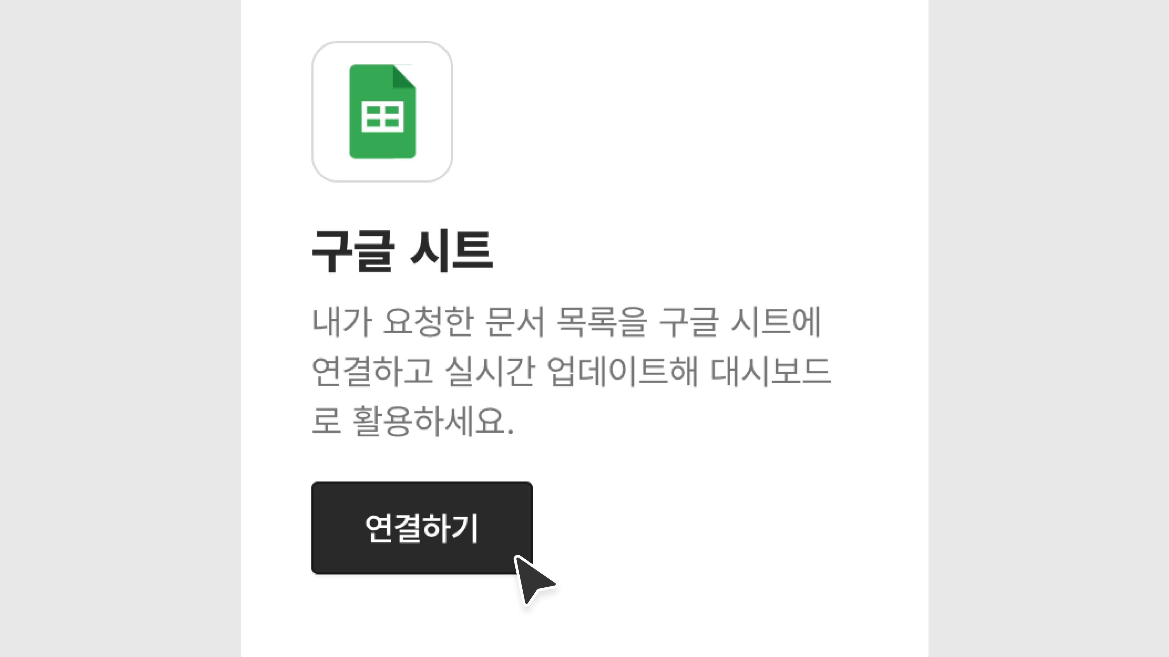 연결할 시트는 구글 계정이 편집 권한을 가지고 있는 시트여야 합니다.