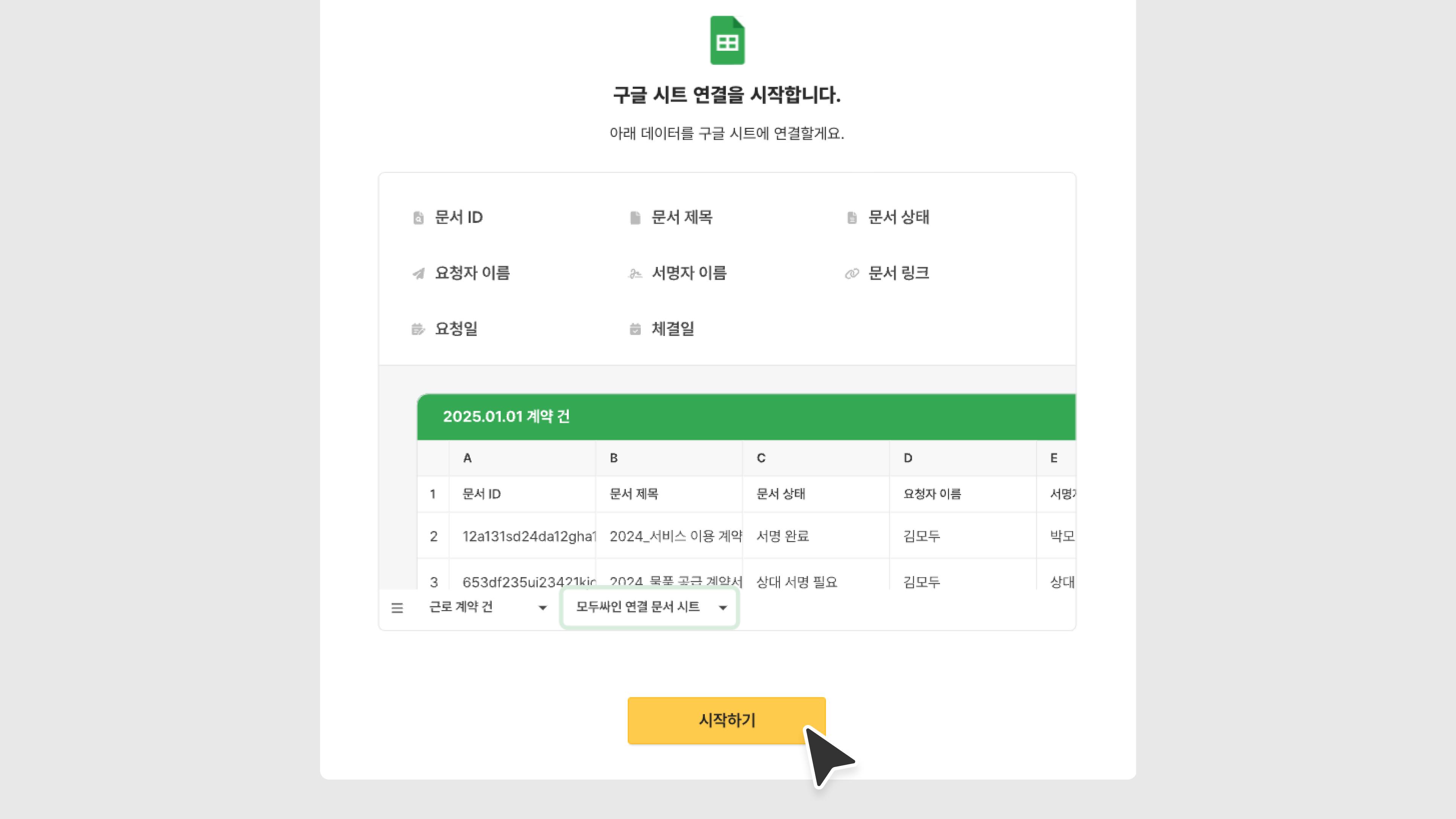 구글 시트 연결한 모두싸인 계정이 새로 서명/열람 요청을 하면