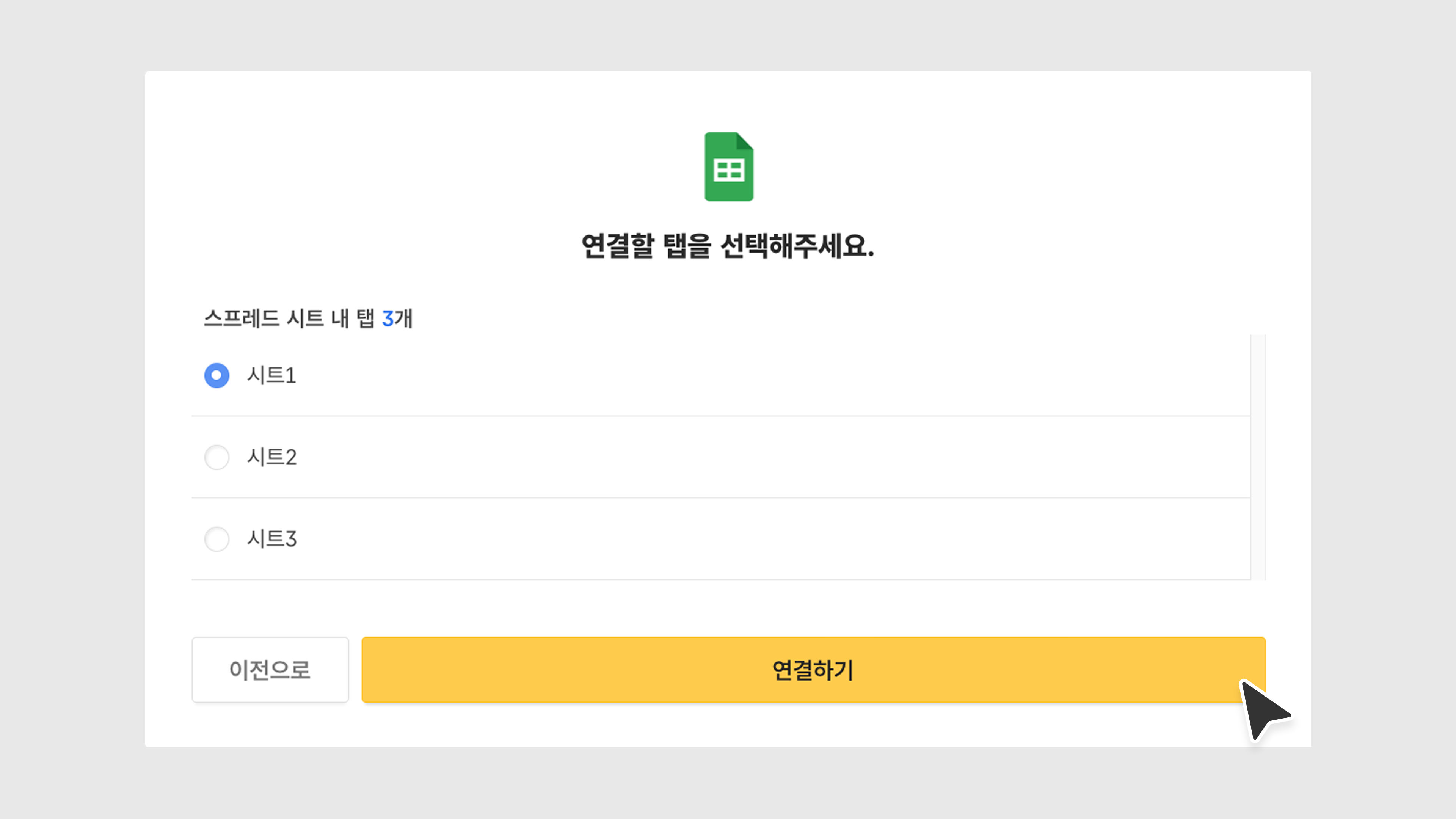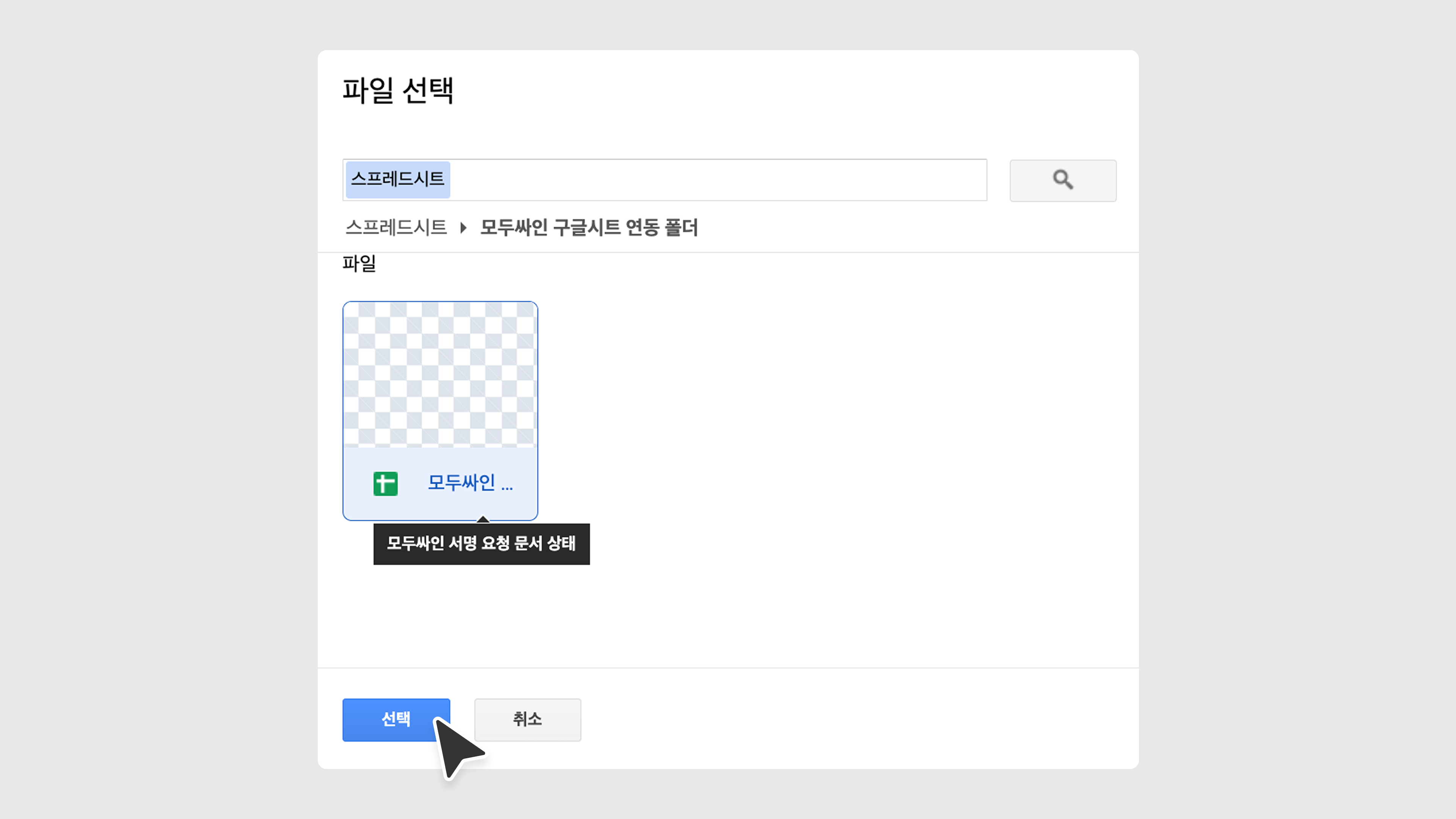 연결할 구글 시트를 선택하고 [선택]을 클릭합니다.