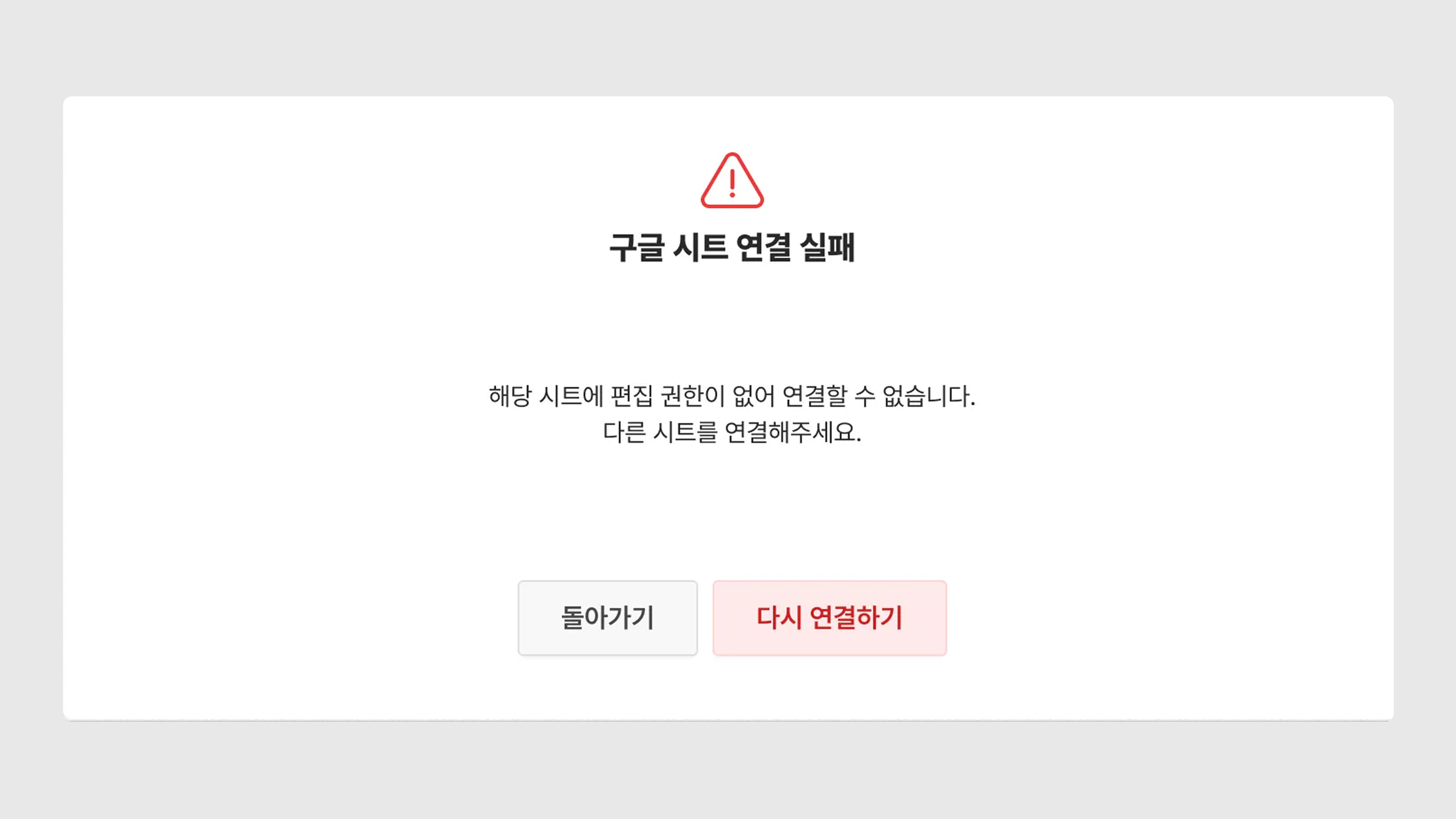 구글 시트에 편집 권한이 없는 경우 → 연동이 불가합니다.