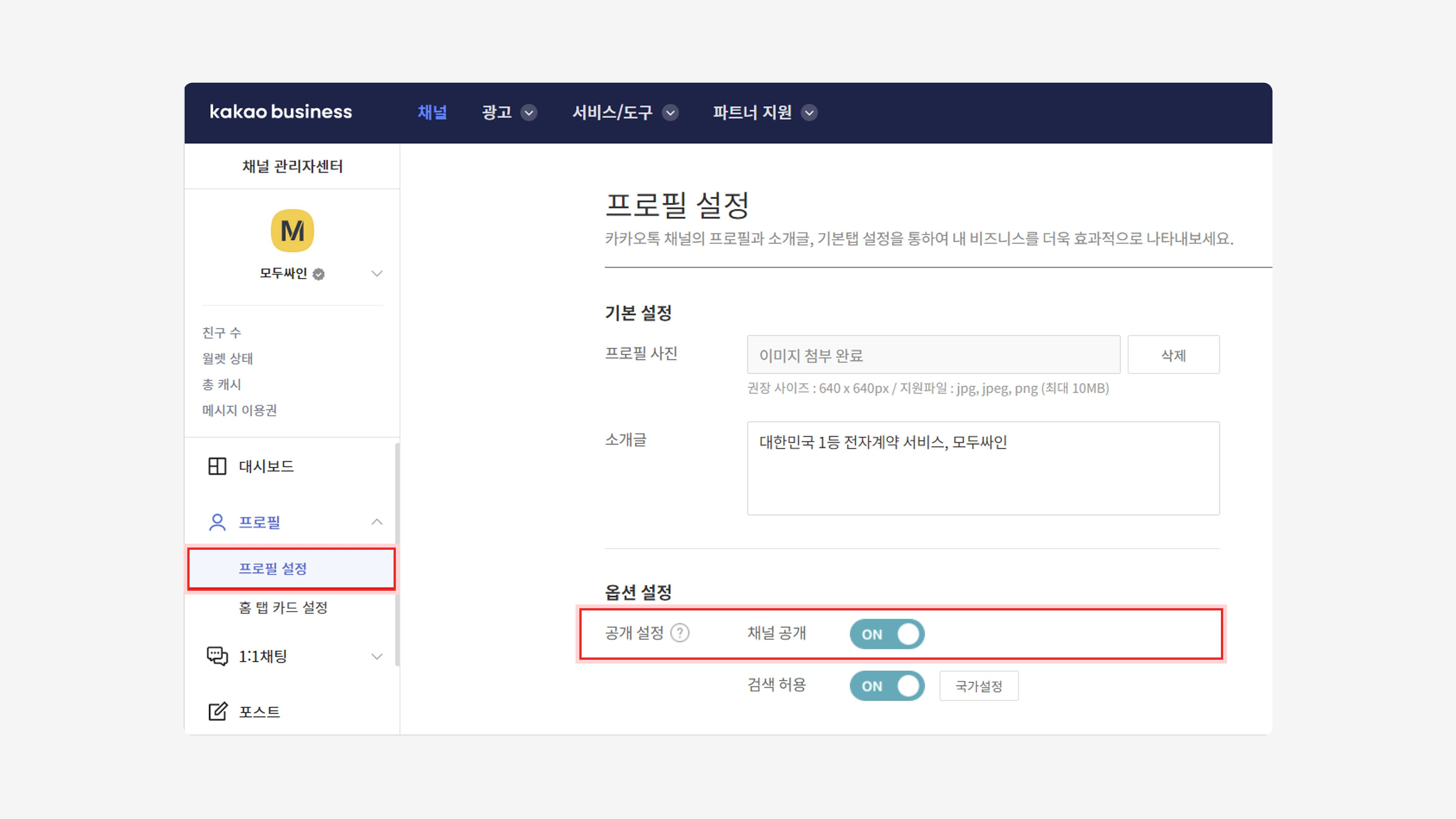 카카오톡 채널(플러스 친구) 공개 설정