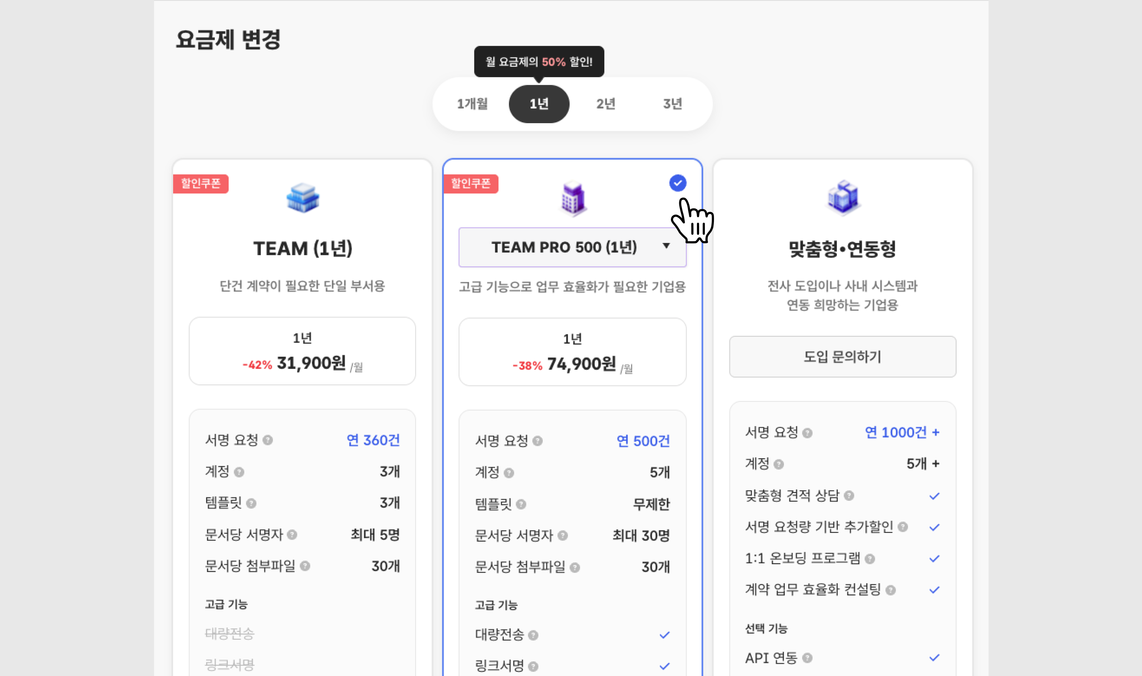 통합 설정 ⚙︎ > 워크스페이스 관리 > 요금제·사용량 > 이용중인 요금제 선택
