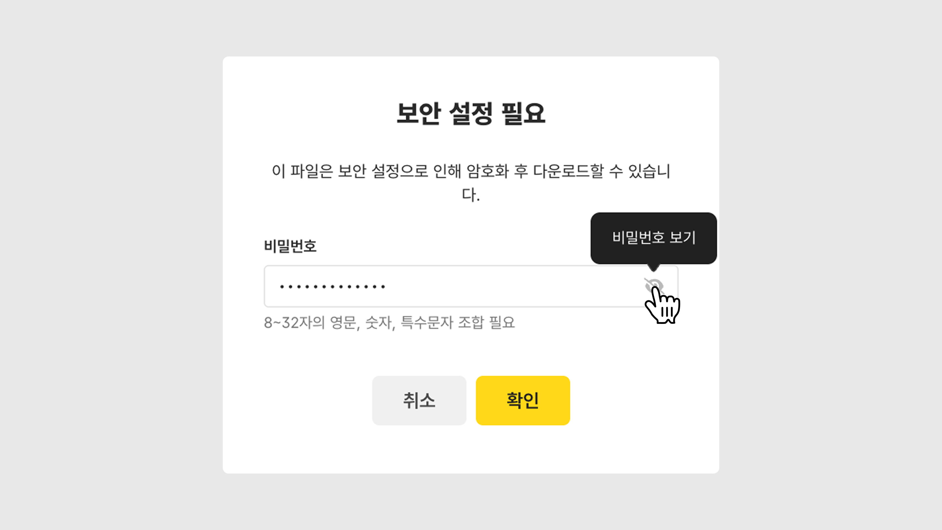 기능 활성화 이후 워크스페이스의 모든 멤버는 파일 다운로드 시 비밀번호를 설정해야 합니다.