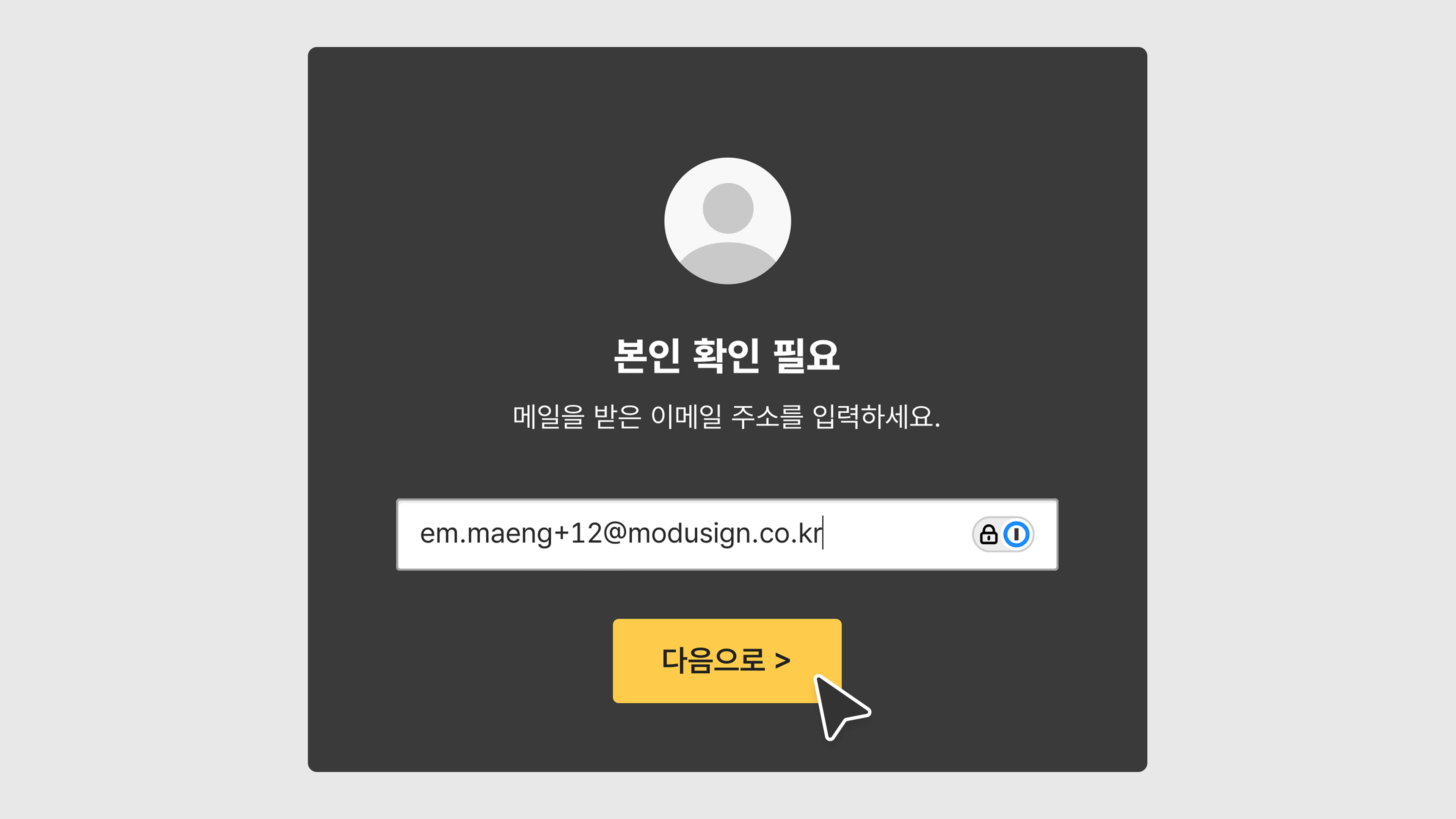 문서 보안을 위해 해당 서명 요청을 수신한 이메일 주소를 입력 후, [확인] 버튼을 클릭합니다.