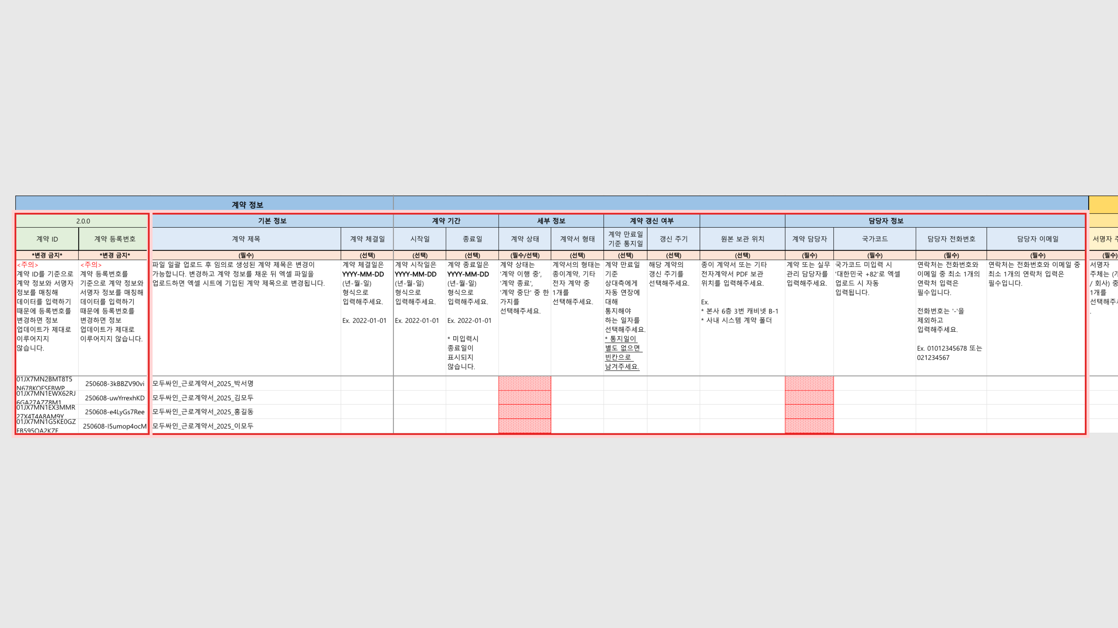 계약 ID / 계약 등록번호 / 저장 폴더는 고정값으로 변경 불가합니다.