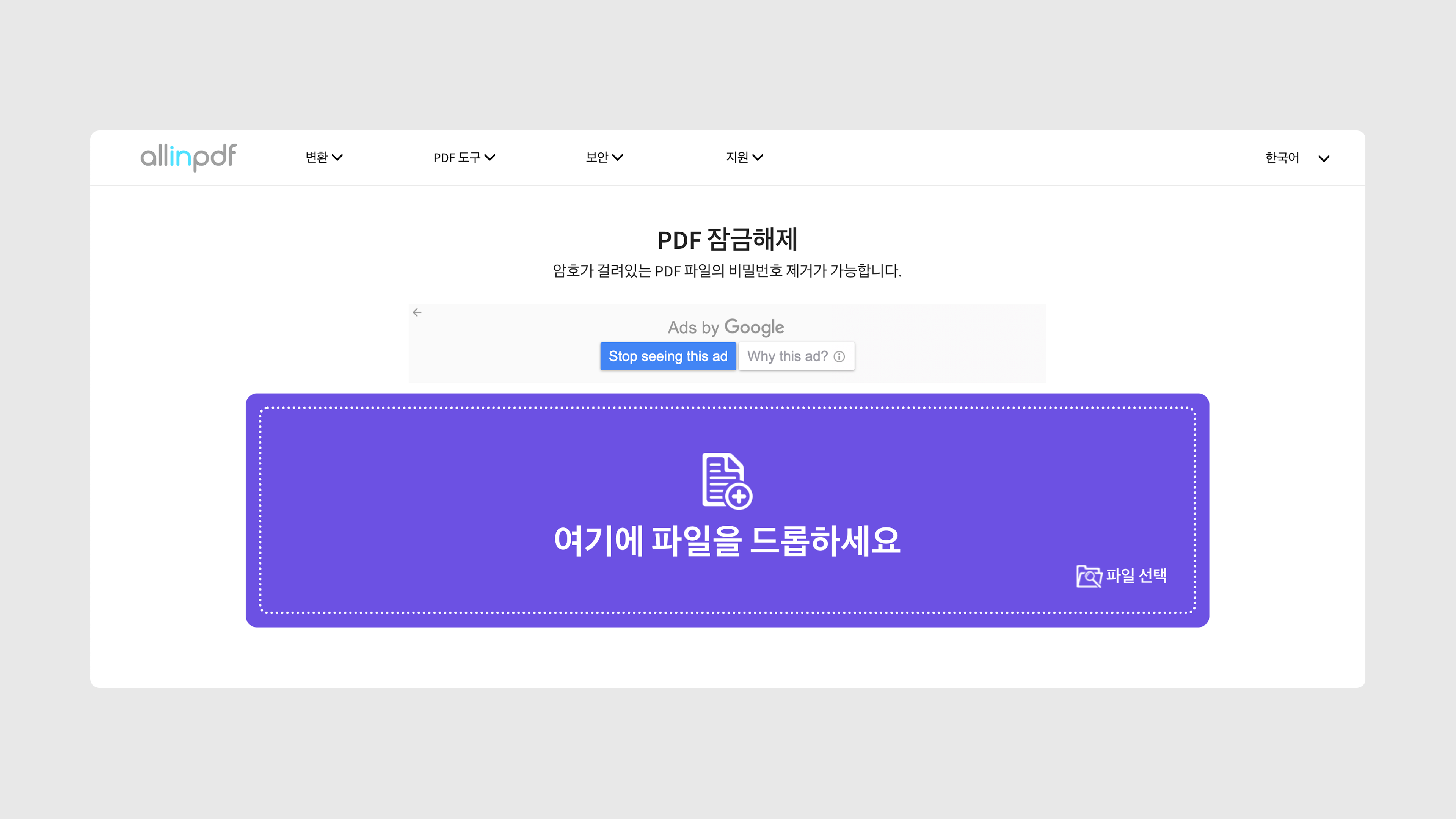 PDF 잠금 해제 사이트 : https://allinpdf.com/unlock-pdf