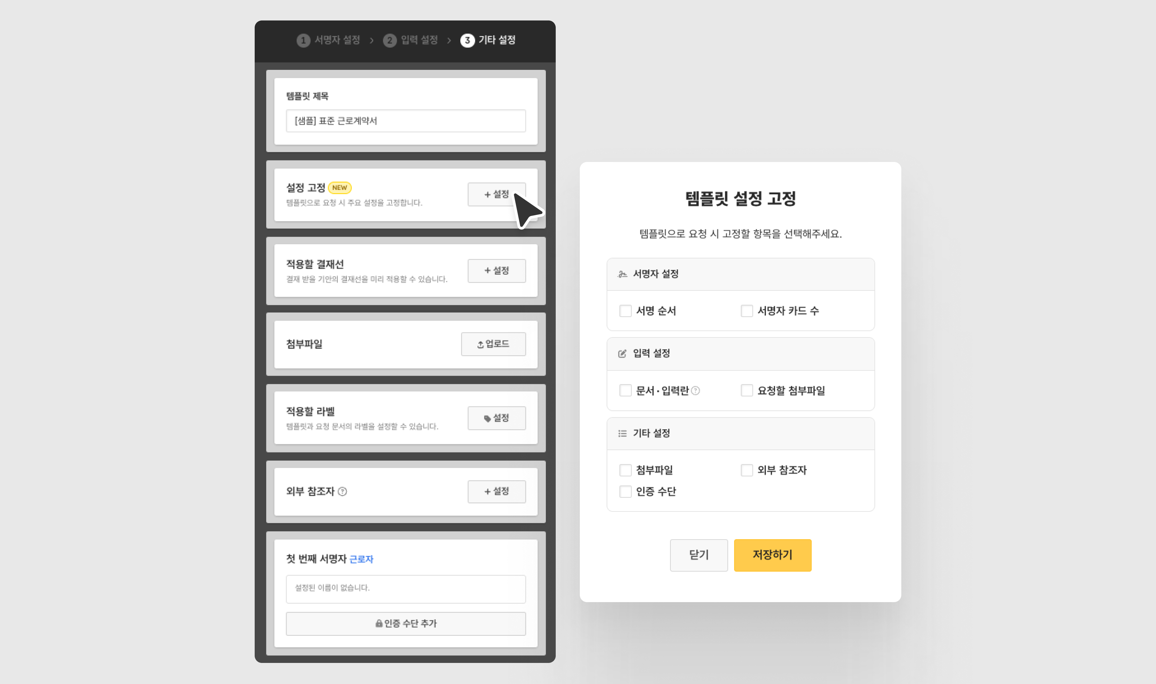 • '설정 고정'이 설정된 항목은 서명 요청 단계에서는 모든 멤버가 수정할 수 없습니다.